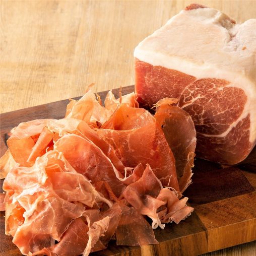 ハモンセラーノは世界三大生ハムのひとつと言われております。スペイン産の生ハムで、少し硬めの食感と濃厚な旨味を楽しめるのが特徴です。生ハムとご一緒に、ワインやスパークリングワイン、また、ウィスキーとの相性も良いので、ぜひお試しになってみてください。