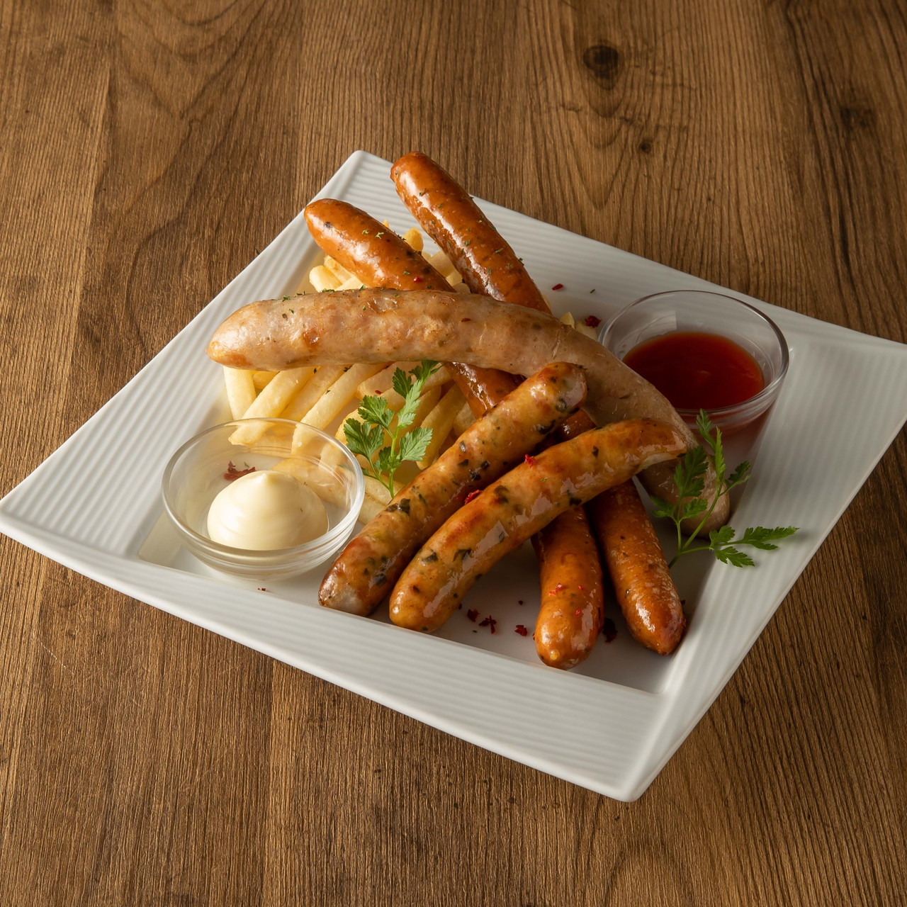 お酒がすすむ ソーセージ3種とフライドポテト盛り合わせ