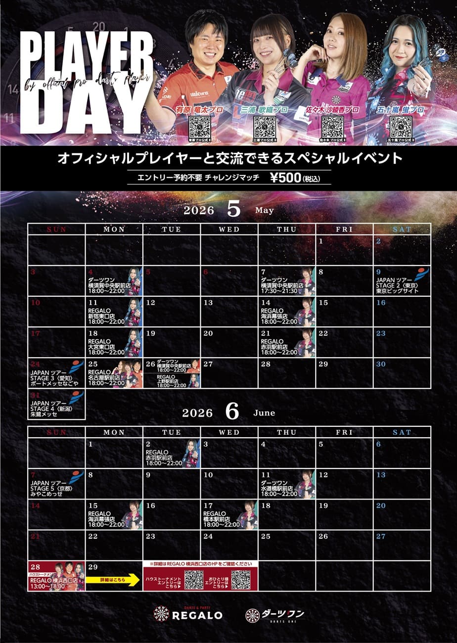 【5・6月イベント情報】プロ選手と交流できるスペシャルダーツタイム開催♪